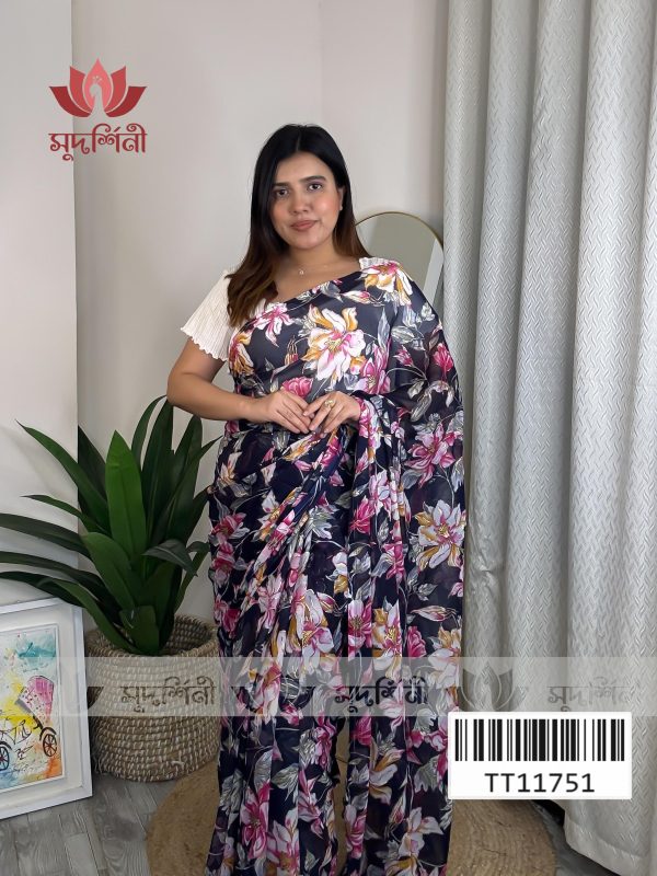 এই জর্জেট শাড়িটি নরম ও হালকা ফেব্রিকের তৈরি। সফট কালার টোন ও মিনিমাল ফিনিশিং শাড়িটিকে করেছে আধুনিক ও রুচিশীল, যা সহজেই যেকোনো বয়সের নারীর স্টাইলে মানানসই। হালকা ওজনের কারণে সারাদিন পরলেও অস্বস্তি হয় না এবং গরম আবহাওয়াতেও এটি খুবই আরামদায়ক।