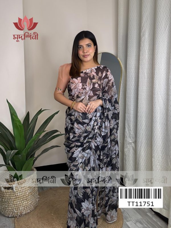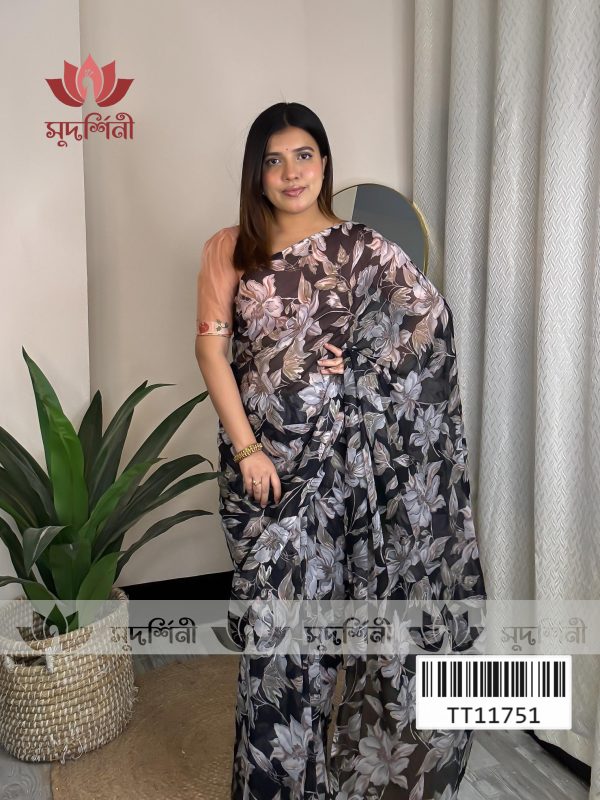 এই জর্জেট শাড়িটি নরম ও হালকা ফেব্রিকের তৈরি। সফট কালার টোন ও মিনিমাল ফিনিশিং শাড়িটিকে করেছে আধুনিক ও রুচিশীল, যা সহজেই যেকোনো বয়সের নারীর স্টাইলে মানানসই। হালকা ওজনের কারণে সারাদিন পরলেও অস্বস্তি হয় না এবং গরম আবহাওয়াতেও এটি খুবই আরামদায়ক।